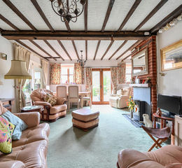 The accommodation is both generous and well presented, with exposed cider press beams, high ceilings, timber ledged and braced doors and deep window sills throughout. The welcoming reception hall sets the tone, leading to a spacious lounge with French doors opening directly onto the garden, creating a wonderful indoor-outdoor flow. There is also a separate dining room, ideal for entertaining, along with a well-fitted kitchen and an unusually large utility room. A sizeable cloakroom/WC offers potential, subject to the necessary consents, to be reconfigured to create a separate study if desired.