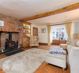 Having quarry tiled flooring, double glazed windows to the front, feature pine window seat, exposed brickwork to walls, exposed beamed ceilings, recessed bar area with light and wine cooler fridge under and pine panelled top over. There is a floor to ceiling brick feature fireplace with inset log burning stove with timber mantel, further original storage cupboard, latch door with stairs rising to a storage/home office with multi-paned double glazed windows to the rear, radiator and latch cottage door.