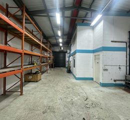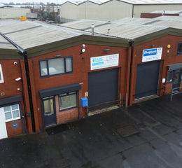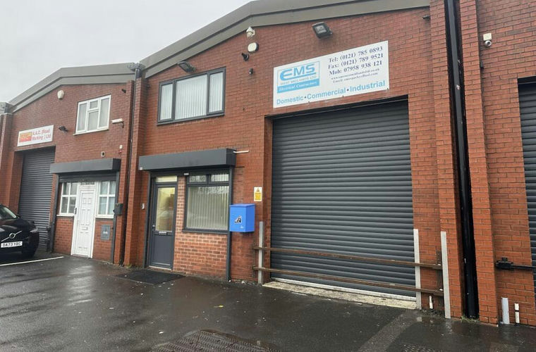 Unit 3, Granby Industrial Park, Garrets Green, is a modern mid-terrace light industrial unit of steel portal frame construction, incorporating a brick-faced front elevation with profile metal cladding above beneath a shallow mono-pitched roof. The unit benefits from a full-height electric roller shutter door providing vehicular loading access, together with a separate pedestrian entrance leading to ancillary office accommodation arranged over two levels. Internally, the property offers predominantly open-plan warehouse space with good eaves height, solid concrete flooring and strip lighting, alongside partitioned offices, kitchenette and WC facilities. Externally, the unit fronts a well-established industrial estate with shared forecourt loading and parking, and enjoys convenient access to the A45 (Coventry Road)