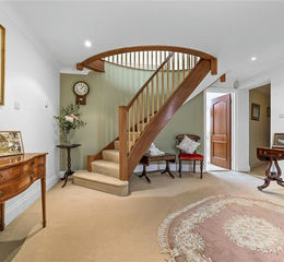 A beautiful, hand-crafted staircase in the entrance hall leads to the first floor, where the exquisite, galleried landing offers an impressive view of both the gardens and the dining room below.