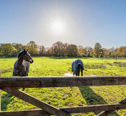 The gardens lie mainly to the front and side of the house, with the additional paddock land extending the total acreage to just over five acres. A large, flat paddock is situated opposite the house across the quiet lane, which also leads to a well-known local private lake, popular with walkers.