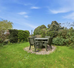 Outside, you will find a lovely garden, ideal for enjoying the fresh air or hosting summer gatherings. Additionally, the property includes parking for one vehicle and a garage, offering ample space for storage or additional parking needs.
