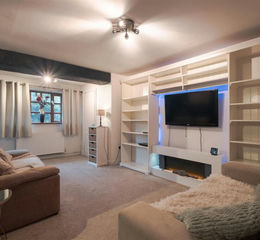 The front door opens into the lounge, a well-proportioned and inviting living space featuring an exposed timber beam, built-in shelving and space for comfortable seating. This room enjoys a cosy feel while still offering excellent natural light, making it ideal for both relaxing and entertaining. Useful built-in storage is also tucked neatly away, adding to the practicality of the space. From the lounge, the property flows through to the kitchen/diner. Fitted with a range of cream shaker style wall and base units with complimentary laminate oak work surfaces, the kitchen provides ample space for free standing appliances, with room for a small table. An additional storage cupboard enhances functionality, making this level particularly well laid out for everyday living.