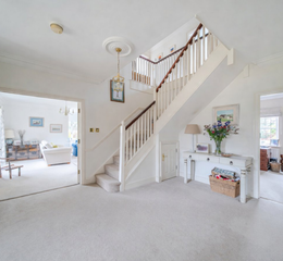 Available for the first time in 34 years, the property has been well maintained and thoughtfully extended, while still offering further potential for enlargement, subject to the necessary consents. The accommodation comprises five double bedrooms, two of which benefit from en-suite facilities. The principal reception areas provide light and spacious accommodation with views over the extensive, west-facing rear gardens.