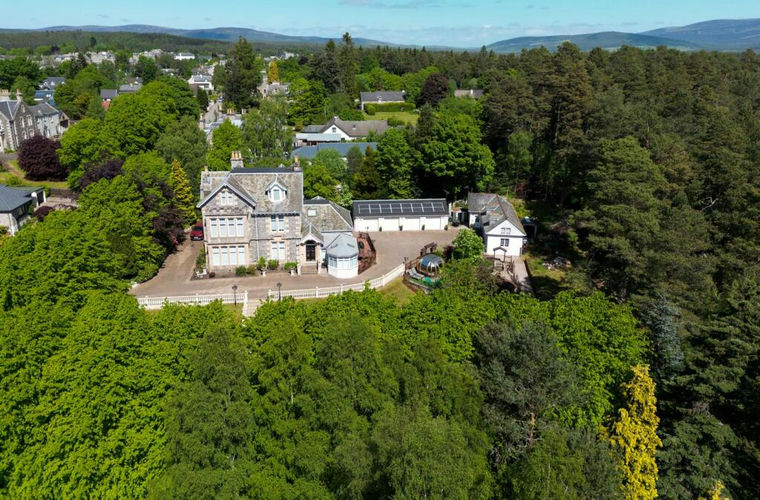 Dunstaffnage House and Cottage, an exquisite property offering an unparalleled opportunity to acquire a majestic Highland residence, nestled in the heart of Grantown on Spey. This impressive offering, replete with striking architectural features, beautifully landscaped gardens, and separate cottage, embodies the essence of grandeur and tranquillity. The main residence is a blend of splendour and comfort, offering a selection of versatile reception rooms, complemented by a state-of-the-art kitchen and elegant conservatories. A further covered outdoor kitchen takes alfresco dining to new heights. Spanning two additional floors are five en-suite bedrooms, providing the ultimate private retreat while a dedicated home working space meets all your remote work needs and a personal sauna with shower presents the perfect relaxation spot. The house also includes a bathroom, a storage cellar and a practical workshop beneath the main dwelling. Adjacent to the main house lies the converted stable, now a charming three-bedroom cottage, which is currently operated as a successful holiday let with a short-term letting licence, with two bedrooms boasting en-suite facilities, making it ideal for multi-generational living or continued letting income. An open-plan design harmoniously merges the kitchen, dining, and sitting areas, crafting a space that exudes warmth and cosiness. Set amidst a sprawling 1.4 acres of lush, manicured lawns, the grounds of this property are a sight to behold. A blend of formal and woodland gardens paint a picturesque landscape, punctuated by terraces, lock block driveways, a serene pond, and sleek decking with an ornate summer house and also includes a spacious quadruple garage. Backing onto the serene Free Church Wood, Dunstaffnage House and Cottage evoke a feeling of a private oasis, providing a quiet respite from the bustling town, yet remaining within easy reach of Grantown?s amenities. EPC House G, EPC Cottage D, Council Tax Band G.