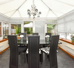 On the ground floor, the luxury kitchen is a masterclass in design and functionality, offering ample storage space and many special touches such as the integral chill drawers and impressive Aga range, all complemented with a light and airy breakfast room adjacent to the kitchen which creates the perfect setting for informal dining. There is a grand dining room perfect for hosting and a sun filled conservatory overlooking the gardens. Further enhancing the property's entertainment capabilities is a unique covered outdoor kitchen, ideally suited for barbecue gatherings and outdoor soirees.