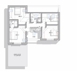 - Shared driveway to parking area and green-roofed car-port, rear garden.