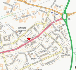 Main Road is a main road route leading to Ayr town centre from the east side of the town, from the Whitletts roundabout on the A77. The local area is known as Whitletts and is a predominantly residential locale although a terrace of shops is located adjacent to the site which includes a convenience store, a baker, a pharmacy, and food operators.